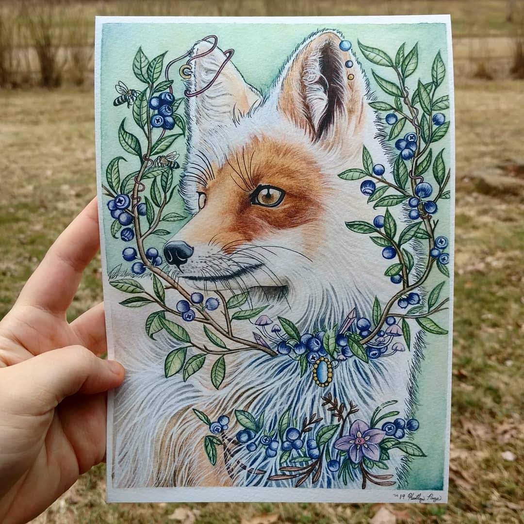 "Vulpes Vulpes" was created in 2019 on 11x15" paper using watercolor, pen and ink.