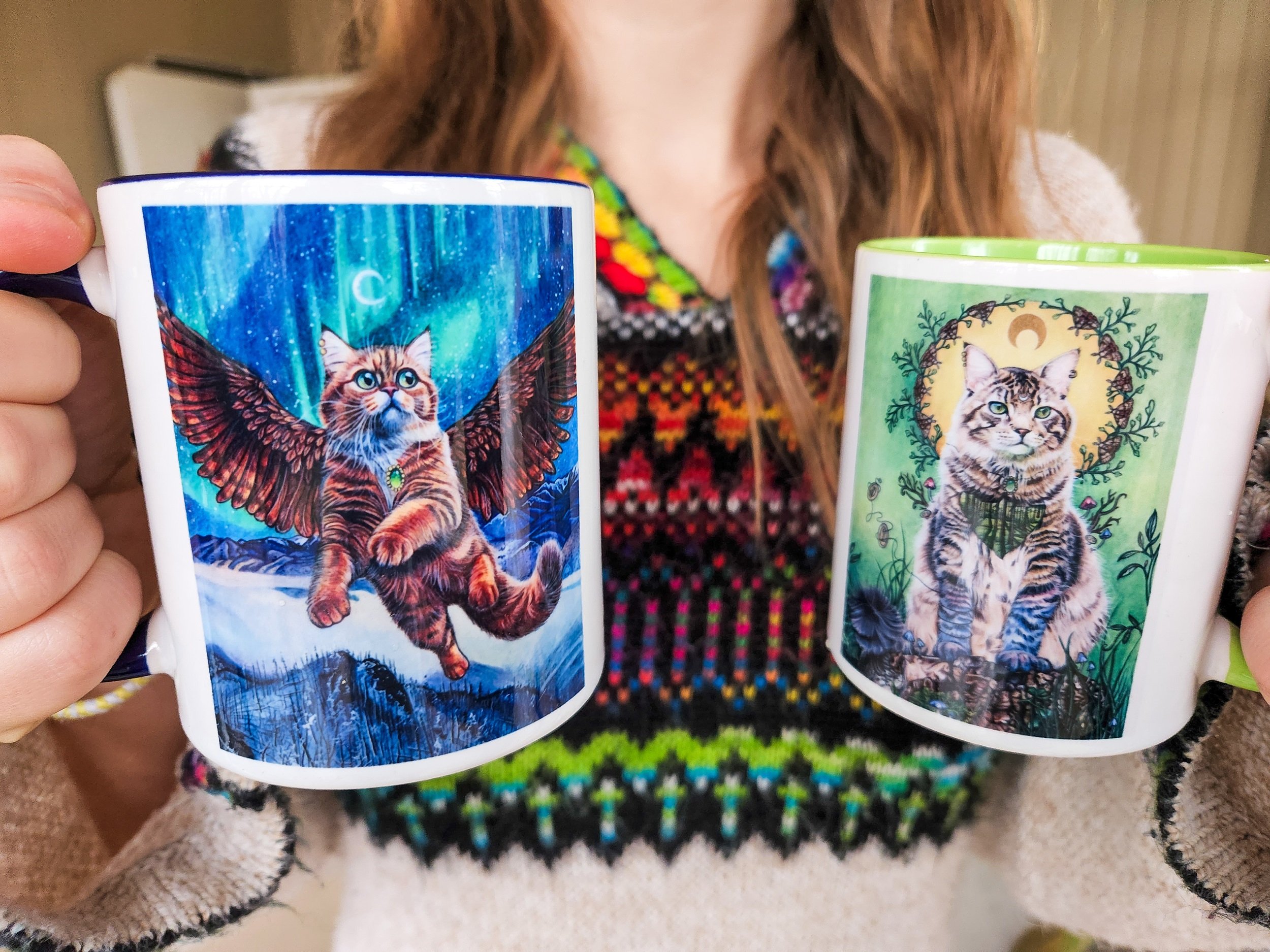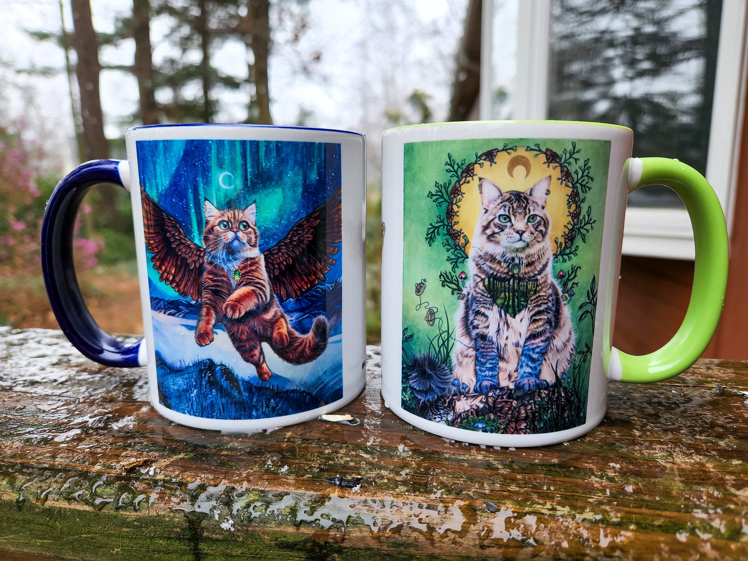 These mugs are printed with my design, "Ripple & Mystic," mirrored on both sides. They are beautifully rendered and great for your morning tea, coffee, or a casual drink.