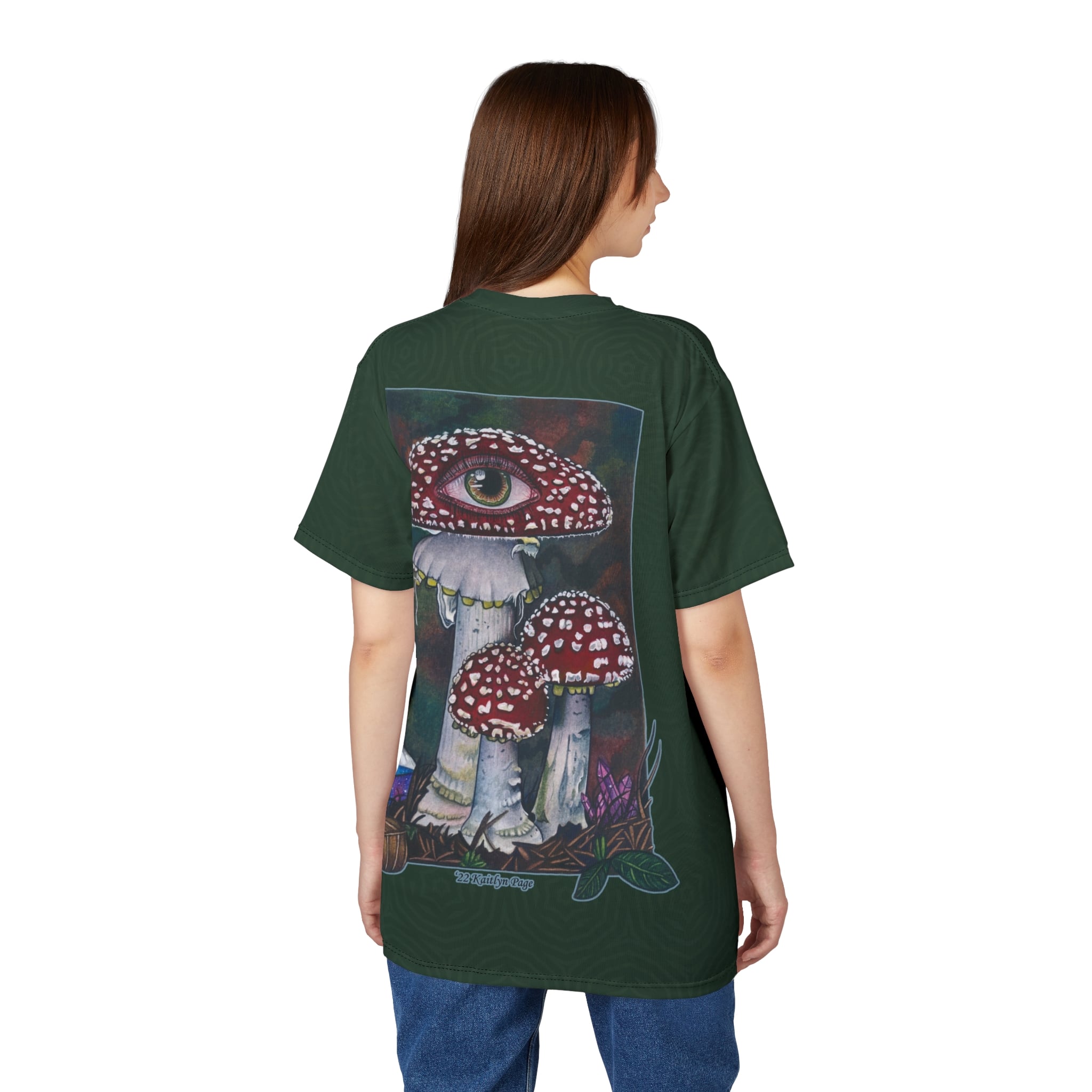 This vibrant t-shirt is decorated with my "Amanita Muscaria" artwork on both the front and back. It's an instant standout in anyone's wardrobe. Made with 100% silky smooth, brushed polyester, these t-shirts are comfy, and designed to be shrink and fade-resistant.