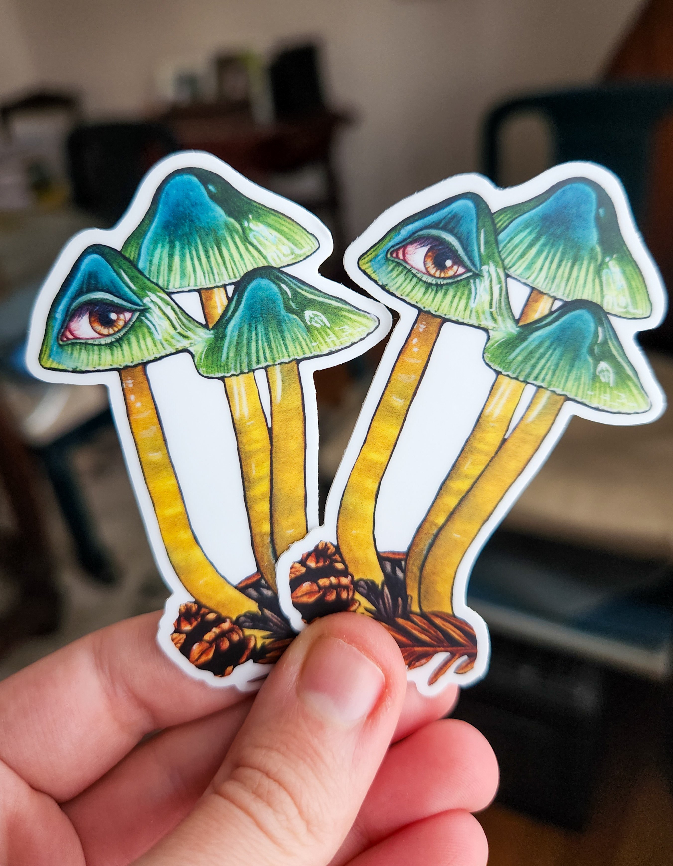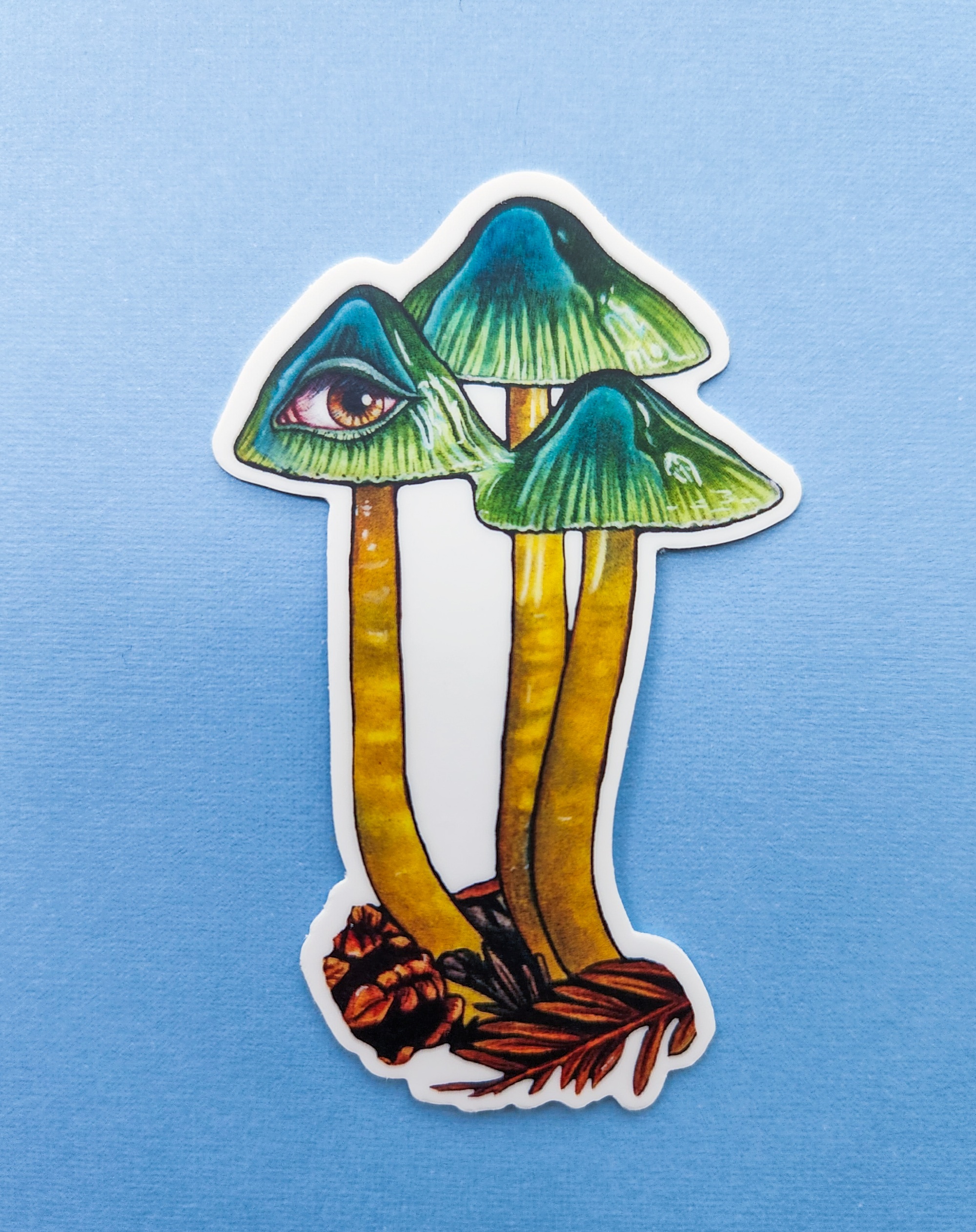 This sticker showcases my "Parrot Waxcap," artwork, originally created using watercolors. I'm a huge fungi lover and these little guys are so pretty, I thought them perfect for a vinyl, waterproof/weather proof sticker.